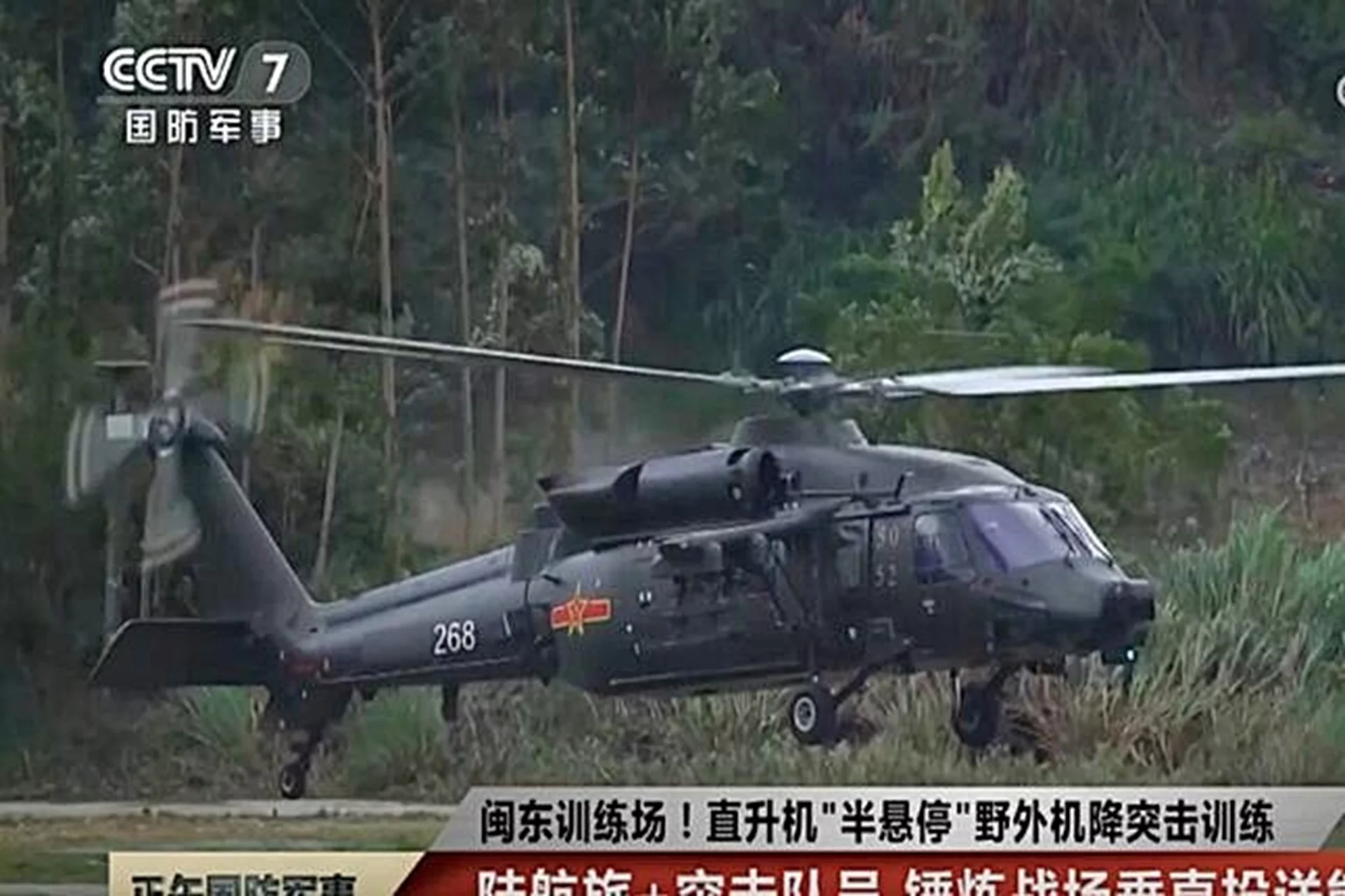CCTV highlighted a semi-hover single-wheel landing technique, enabling troops to deploy in: