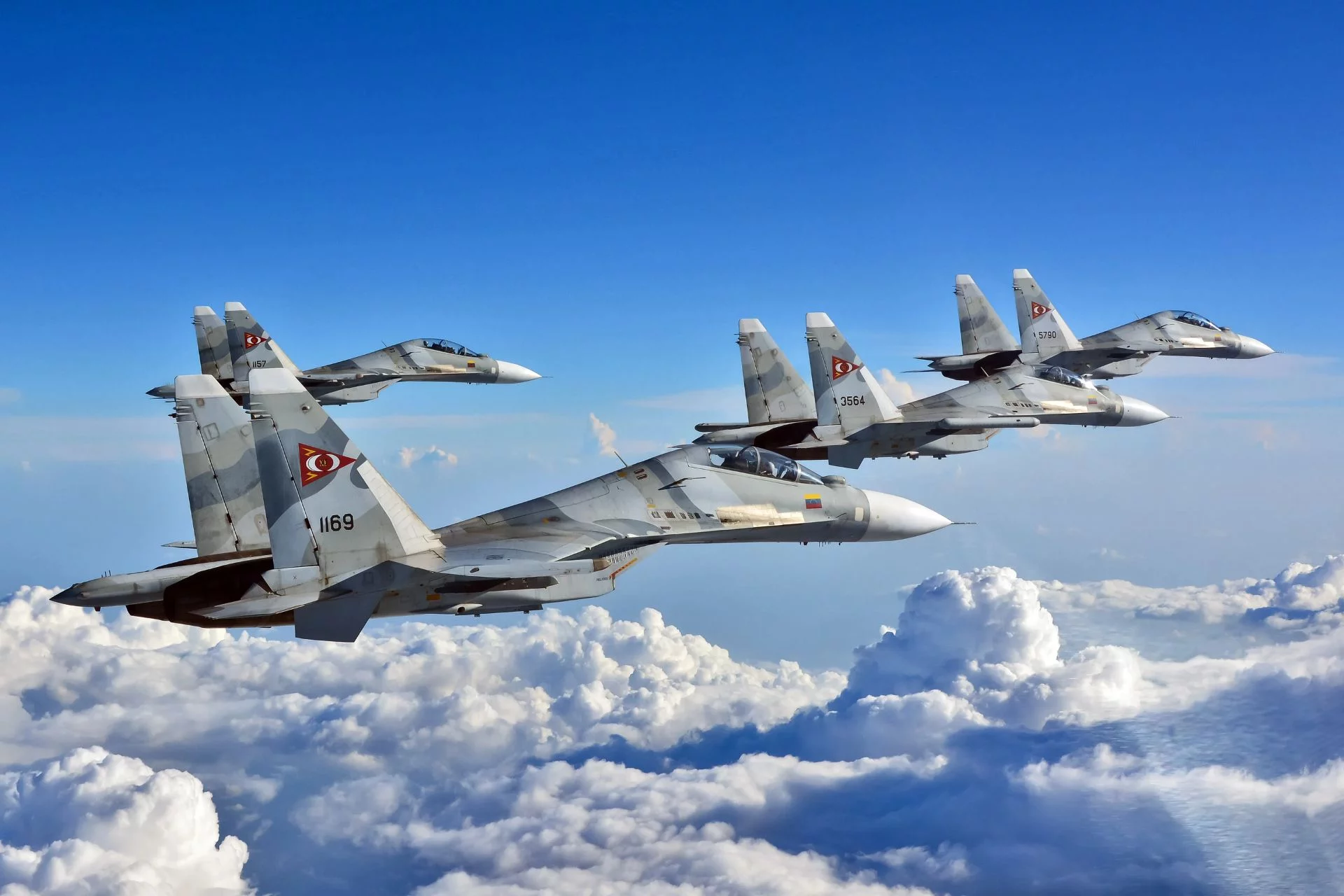 The Venezuelan Air Force operates around twenty Su-30MKV multirole fighters, forming the backbone of its combat aviation. Armed with R-77, R-27, and R-73 air-to-air missiles, these jets can also employ Kh-31A and Kh-31P missiles against naval or radar targets, giving Caracas a credible limited counter-strike capability. A handful of aging F-16A/Bs remain in service for secondary tasks such as patrol and escort missions.