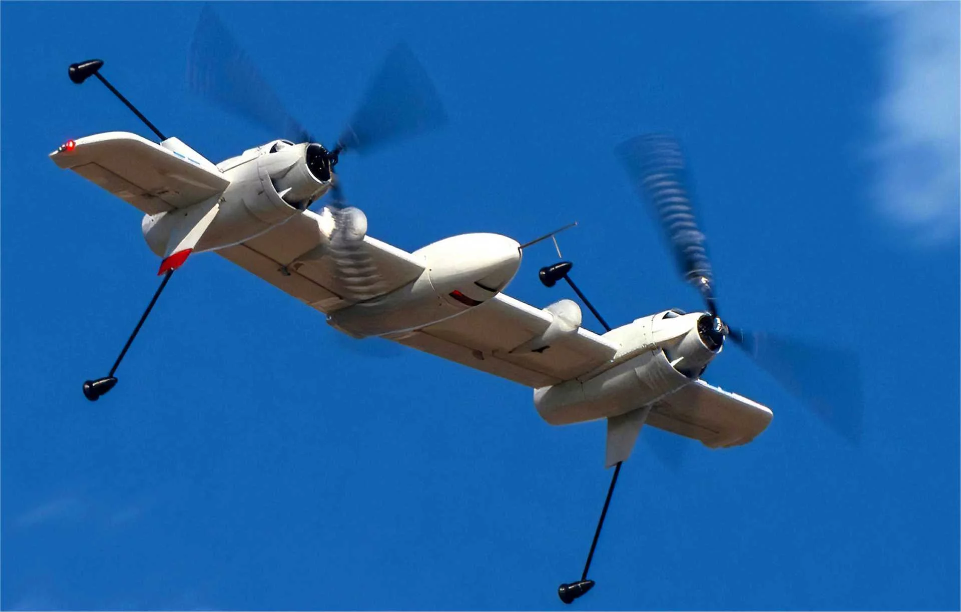 Nomad’s rotor-blown wing architecture pairs twin proprotors with a fixed wing, enabling vertical lift for takeoff and landing and efficient wing-borne cruise in forward flight. That dual-mode performance delivers greater range and endurance than conventional rotary-wing UAS without requiring runways or dedicated launch infrastructure.