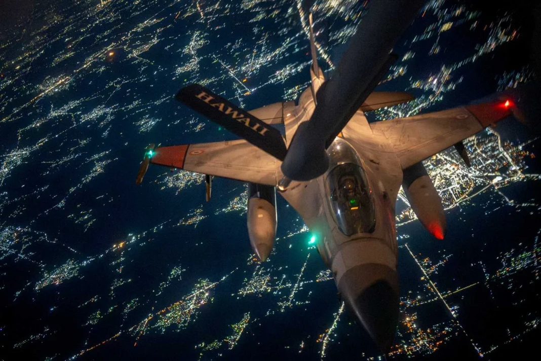 Flying from a forward-deployed base, the KC-135 performed the refueling at cruising altitude, extending the F-16’s range and endurance for a simulated long-range strike mission. Beyond its technical achievement, the event underscored the strategic importance of maintaining operational reach for allied aircraft, particularly in regions where airbase access can be limited or contested.