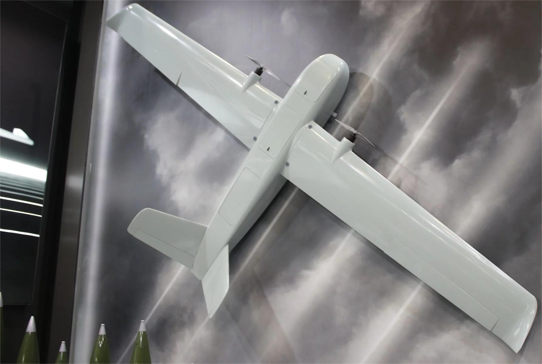 With a top speed of 160 km/h and operational speeds ranging from 120 to 150 km/h depending on the configuration, the loitering munition drone offers up to 80 minutes endurance, while the bomber and FPV carrier versions reach 150 minutes. Operational range extends up to 120 km, with a service ceiling of 1500 meters. It operates effectively in temperatures from -20 to +50 °C and can be deployed within 15 to 25 minutes. Units are stored in containers measuring 1680 x 580 x 575 mm.