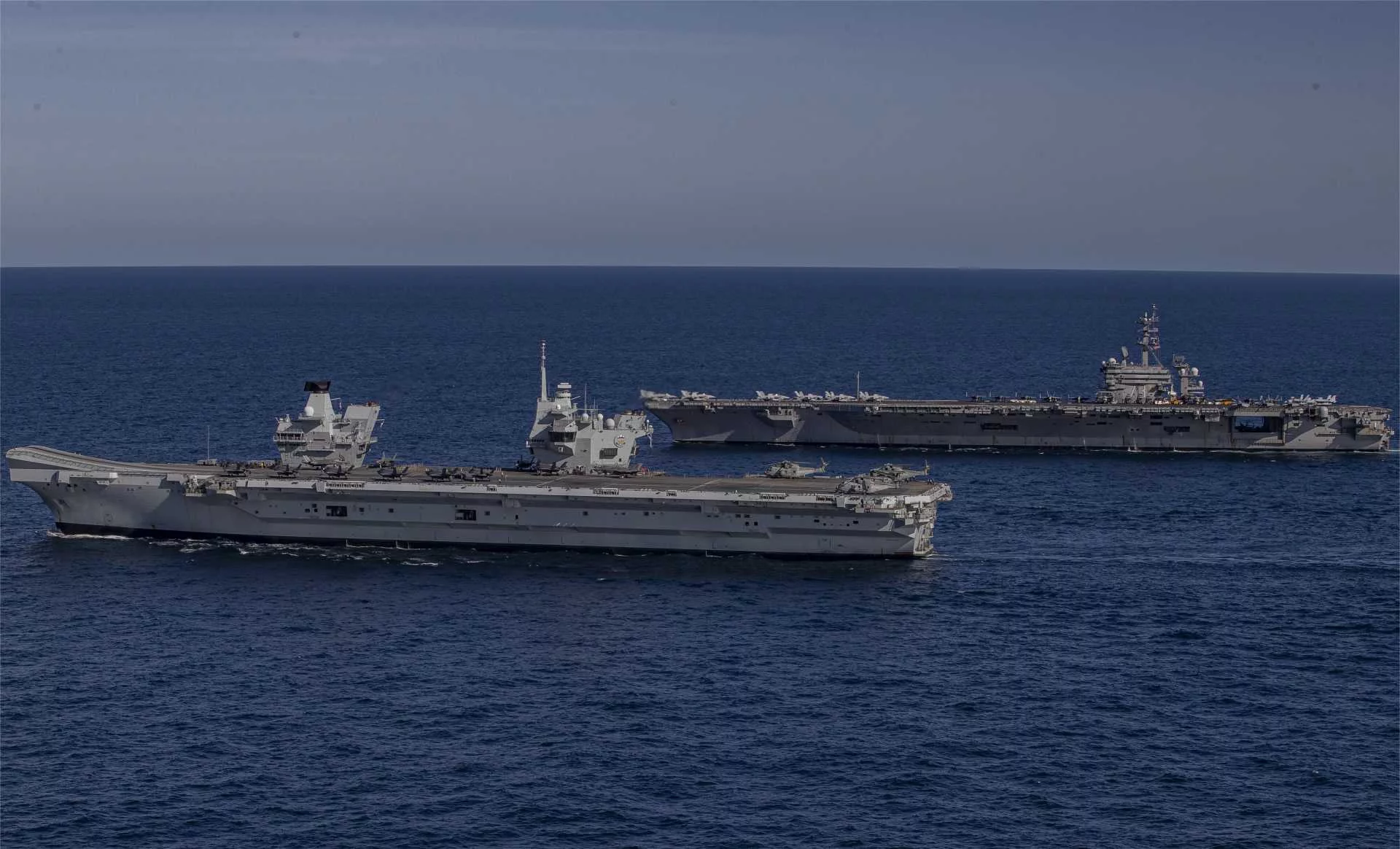 The bilateral maneuver showcased integrated power projection and air wing interoperability, with both carriers launching joint flight operations featuring U.S. Navy F/A-18E/F Super Hornets and Royal Navy F-35B Lightning IIs. The event represents a significant enhancement in allied carrier strike capabilities within the Indo-Pacific theater, signaling unified deterrence in an increasingly contested maritime region.